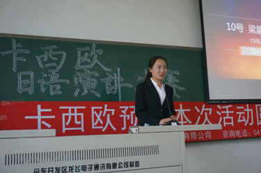 通过初赛的层层选拔,共有来自经济与管理学院13、14级的16名选手进入总决赛。决赛共分二个环节。首先,选手们按照抽签顺序,围绕“我的梦”和“我眼中的大学”这两主题进行演讲。选手们激情澎湃的讲说,充分展现了自己踏实的日语功底与流利的口语,使整个比赛一度升温。在评委提问环节,选手们敏捷的思维,利落的回答,更加深了对自己演讲内容的认识与理解,并使得整个比赛达到高潮。最后经过评委老师的认真点评,来自13级2班的梁晨静和13级7班的肖璘摘得了本场日语演讲大赛的桂冠。4名同学取得第二名的好成绩,6名同学获得了季军,至此第一届“卡西欧杯”日语演讲大赛圆满的落下帷幕。