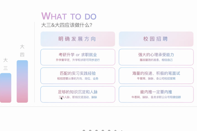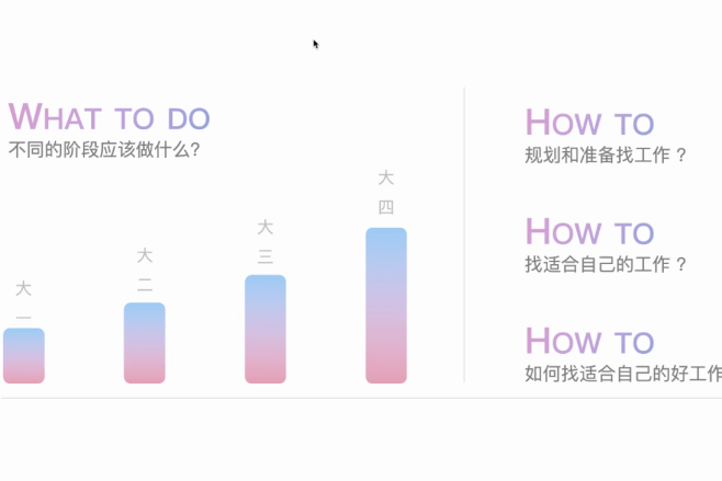 学长首先介绍了自己的实习经历,带领我们从如何规划大学生活、如何发现适合自己的实习和工作、怎么找到一个好的实习和工作、为什么选择从事互联网行业的角度出发分享了他的互联网打工人养成记。
