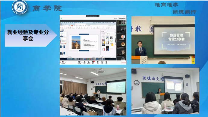 在2021级家长会上,辅导员钟俊英老师从两个方面的内容与家长进行了沟通交流。第一个方面是对本学期学生工作的总结,重点从学风建设、专业课程学习、课余活动等方面进行了详细的阐述,强调了学业成绩的重要性,并指出学生工作和职业规划对大学生的未来职业发展有着很大的影响。第二个方面是假期的日常管理,希望家长能够帮助同学们更好地利用假期时间,多参与社会实践,不断充实自己,提高自己的能力。