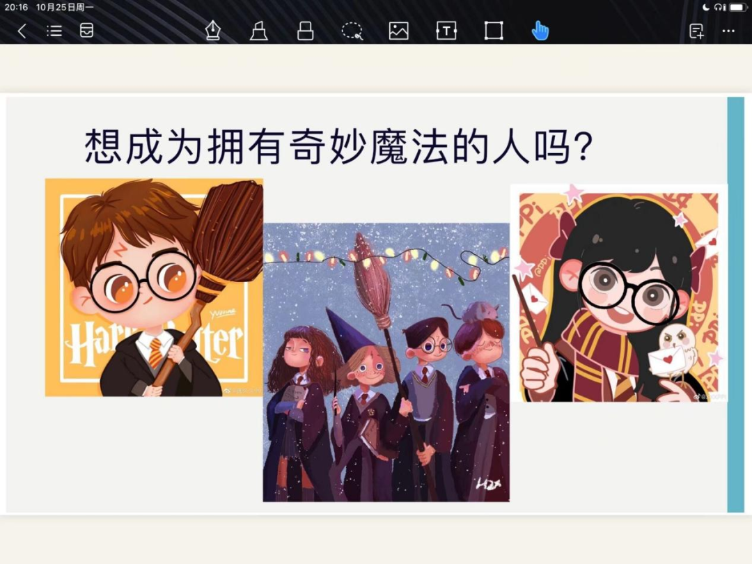 我把英语课上成了我喜欢的样子。每节课,我都会挑选一部我喜欢的电影,以此为背景给他们做课堂导入,吸引他们听课。第一节课用的素材是《哈利波特》,我问他们“你们想成为拥有奇妙魔法的人吗?”他们很激动地回答:“想!”实际上这是个双关的问题,通过努力,你就可以创造属于你自己的美好人生,而你于你自己而言,就是一个魔法师,那个魔法名为:创造美好。我们很容易忽略身边的美好,也许大家参与支教是为了活动加分、丰富经验、获得实习证明,实话说我也是,但是后来我发现和小孩相处真的很幸福,因为他们的世界很简单,就是想玩,没有那么多压力逼迫你加速加速加速,直到累瘫在地上,对我们来说,休息时间就拿来睡觉就好了,但对他们来说,这些时间我可以和小朋友一起过家家、踢足球、搭积木,他们拥有的快乐很多很多,同时他们也不吝啬地将快乐传递给我们。没有所谓的年龄代沟,只是快乐难以相通。
