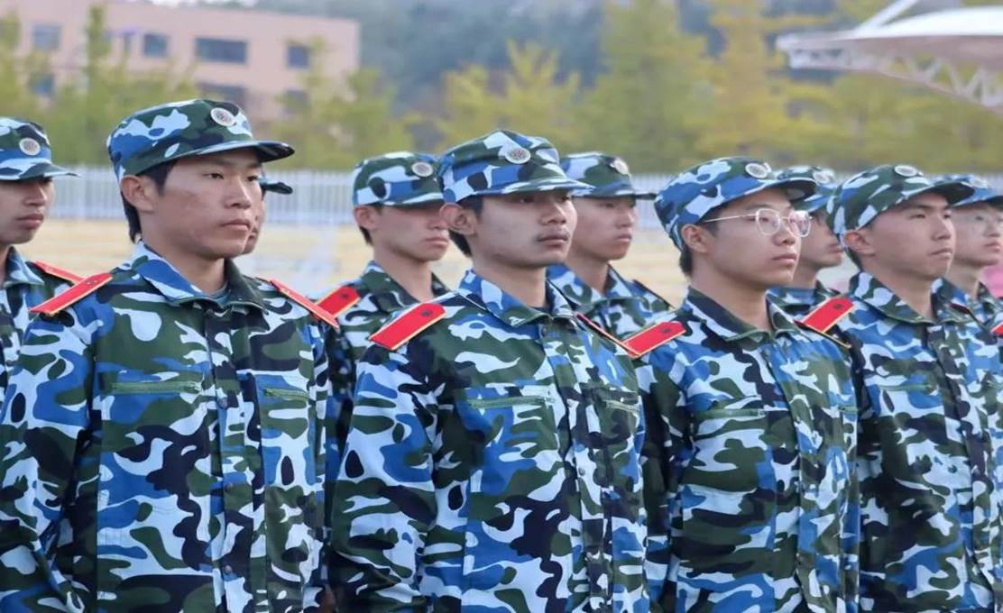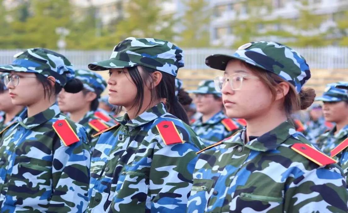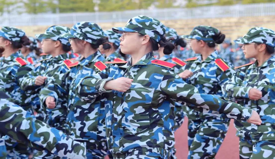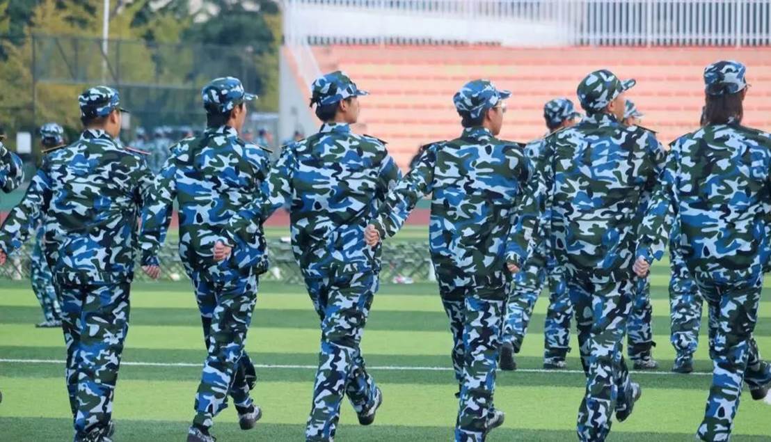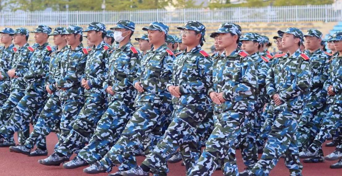 树冠吐出云霞,同学们身姿挺拔,披戴着晨曦,一遍遍跟着教官指导,听着教官的口号 “立正!向右看齐!向前看!齐步走——”同学们整齐划一地反复操练着,洪亮的“一二一二”口号声回荡在校园里的每一寸角落。