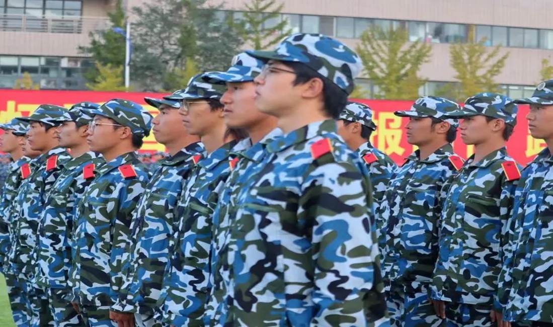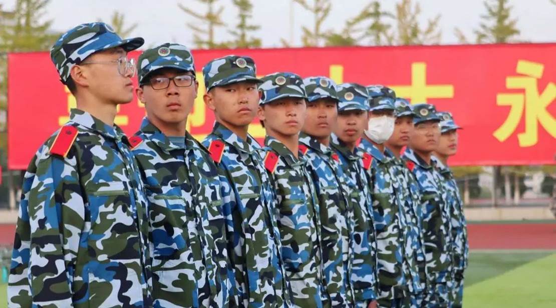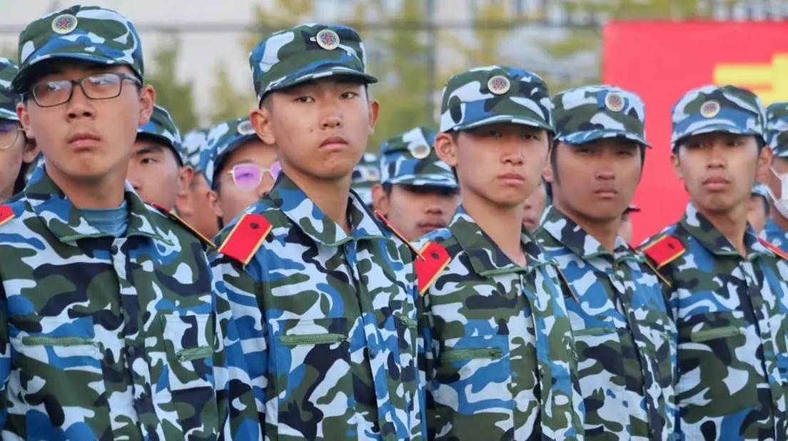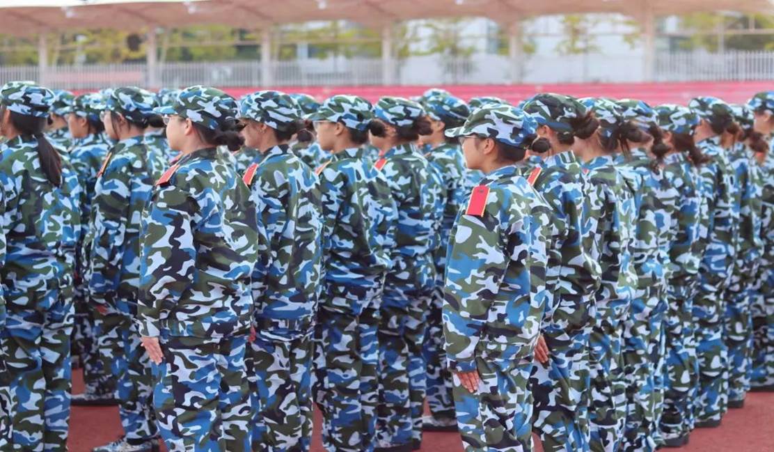 树冠吐出云霞,同学们身姿挺拔,披戴着晨曦,一遍遍跟着教官指导,听着教官的口号 “立正!向右看齐!向前看!齐步走——”同学们整齐划一地反复操练着,洪亮的“一二一二”口号声回荡在校园里的每一寸角落。