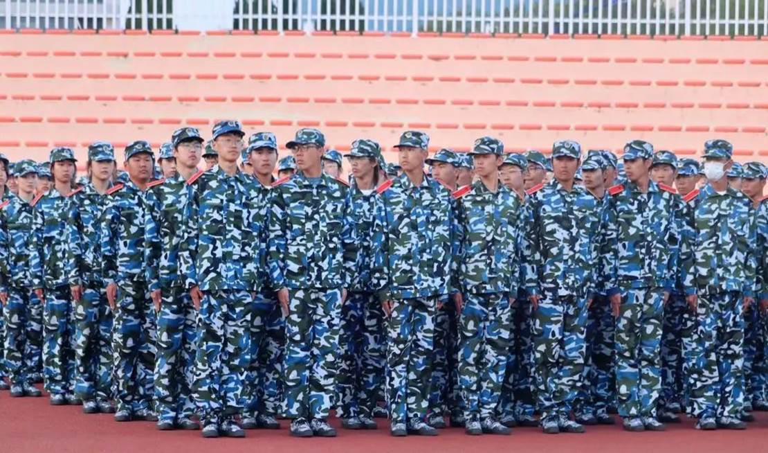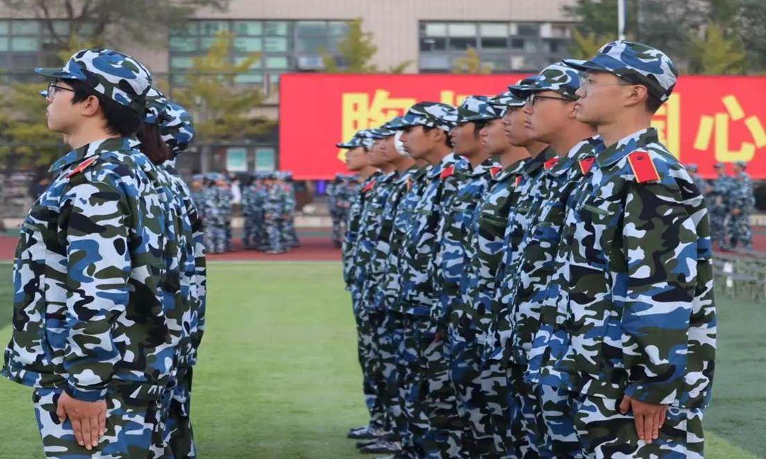 同学们穿着整齐庄重的迷彩服精神抖擞、意气风发地走过主席台。