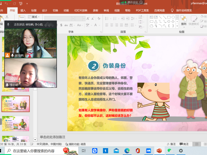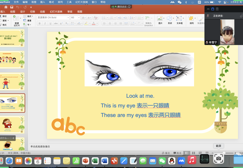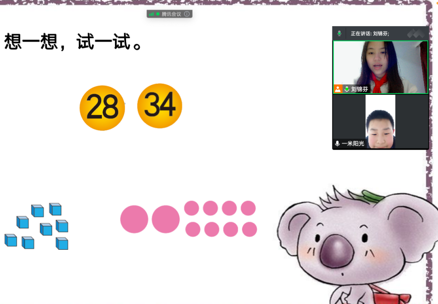 直到我看到了这个可爱的一年级小朋友,她面对镜头,端正地坐着,时刻跟紧我的思路,思考我提出的问题,用奶奶的声音说出自己的答案。这样的表现,让我逐渐放松下来,我不再像之前那样紧张拘谨,我逐渐开始放松下来按照自己准备的ppt讲下去。每一节课我都会先带小朋友复习之前学过的内容,令我惊喜的是,居然大部分内容她都是记得的,她真的把我的话放在了心里。我有一种前所未有的自豪与欣喜,这让我更有动力教授小朋友更多知识。