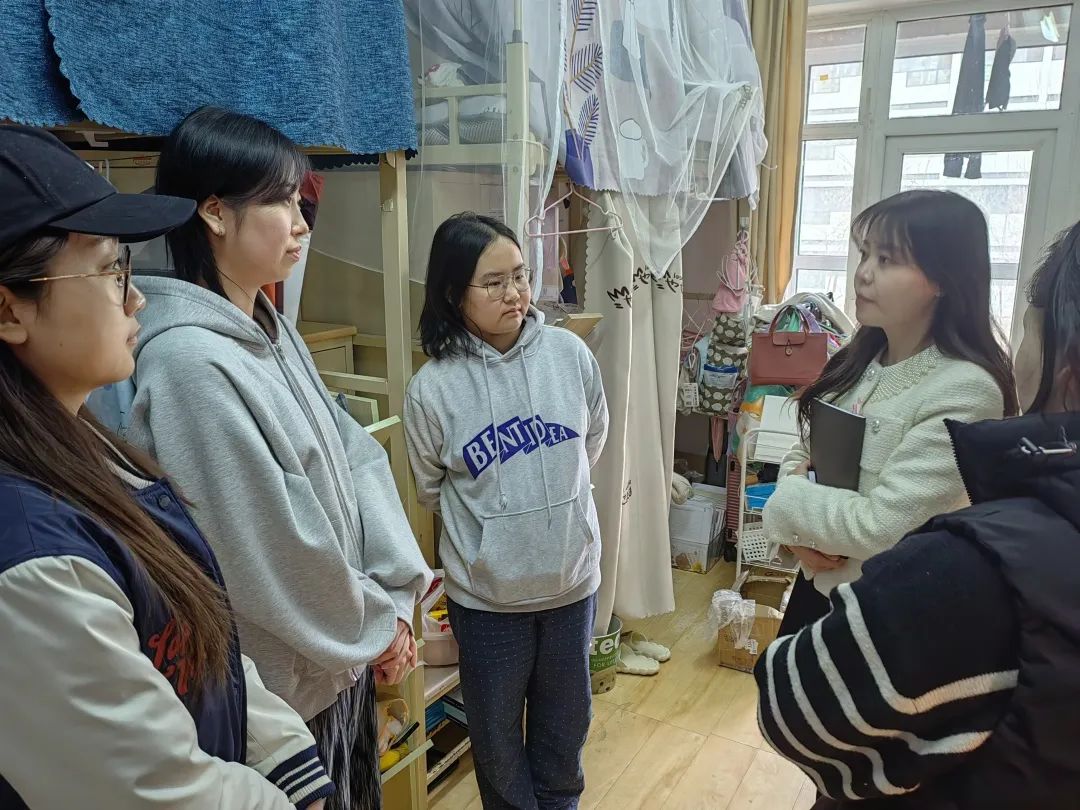 19级辅导员于子容走访学生宿舍,为同学们送来关心与问候。