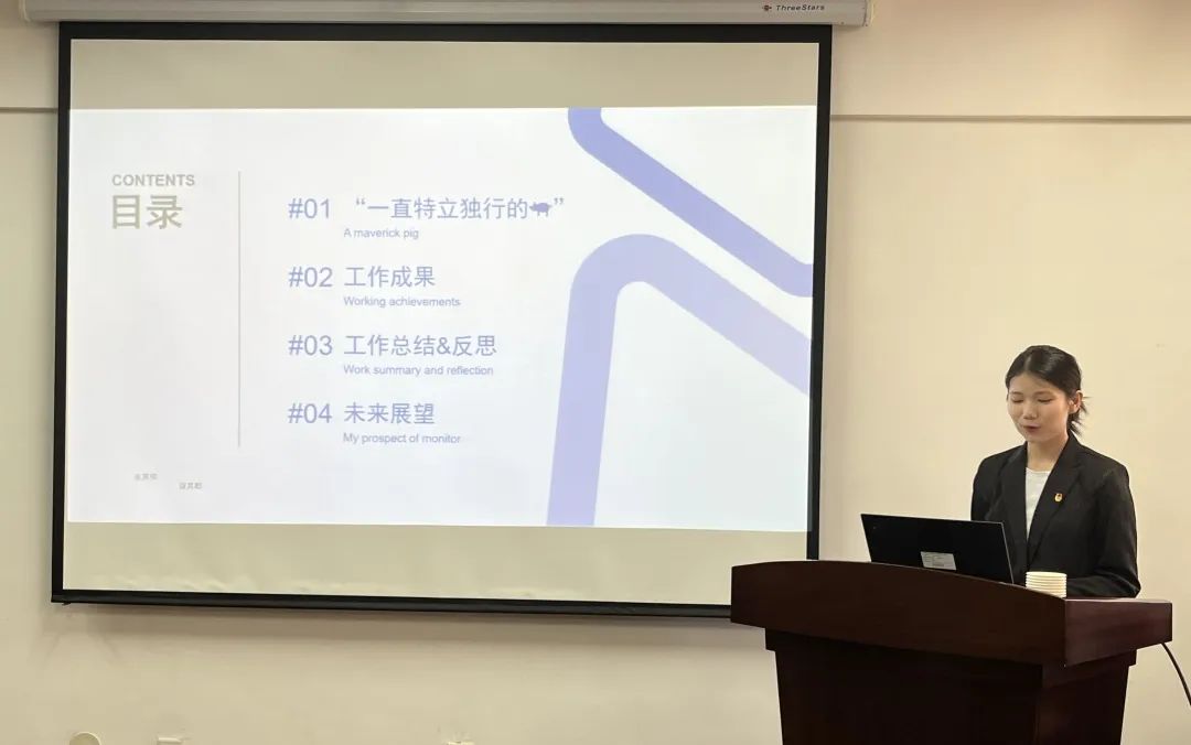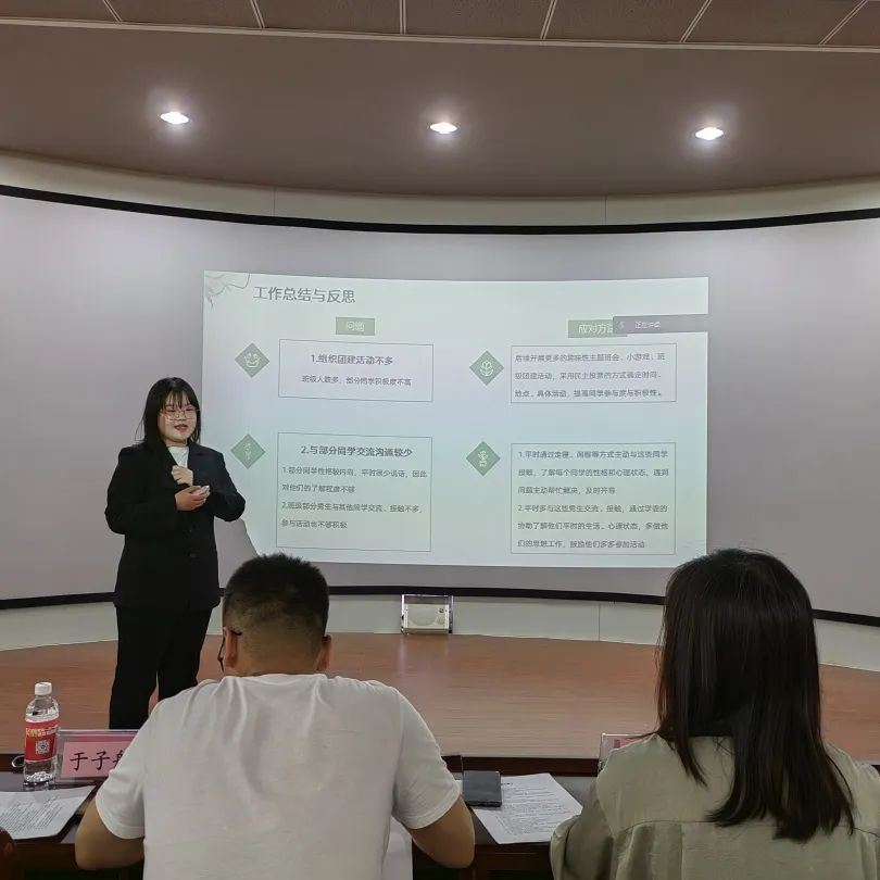 决赛中,参赛选手围绕自我简介、工作总结、收获成长、未来展望等方面,结合PPT展开精彩演讲,充分展现了学院学生干部的青春风采。评委老师对参赛选手的事迹材料、答辩内容及现场表现进行评价。
