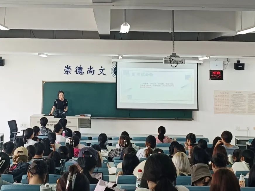 于明德楼召开年级大会暨考前诚信教育大会,会议由各年级辅导员老师主持召开。