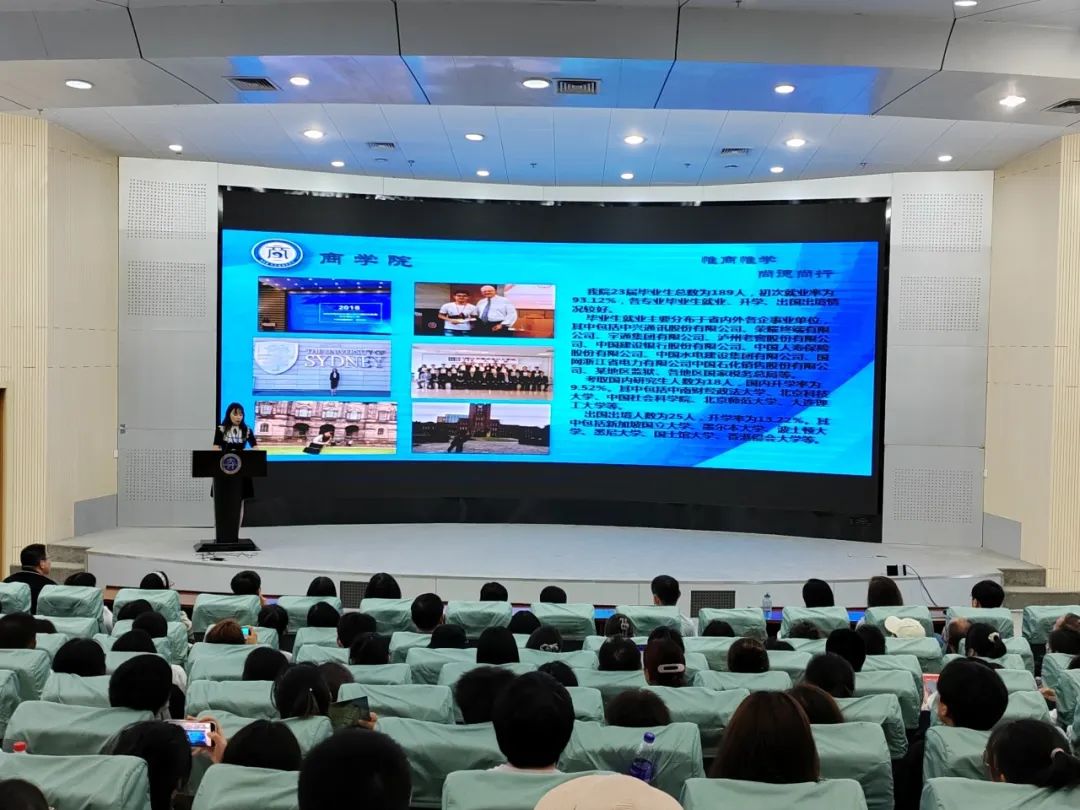 随后,旅游管理、财务管理、经济学、跨境电子商务、国际经济与贸易、ACCA等6个本科专业教研室主任、涉外法制特色实验班张红老师以及旅游管理专业硕士、国际商务专业硕士等2个研究生教研室主任依次为新生和家长介绍了各专业的基本情况。通过精准的数据、丰富的图片和生动的语言,让新生们对所学专业有了更加深刻的了解。