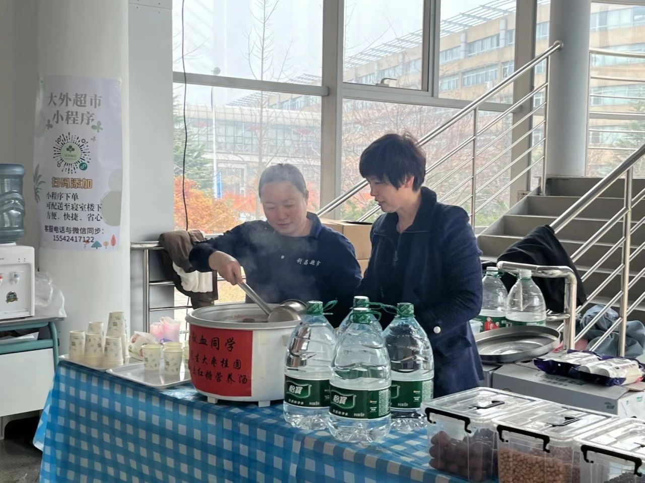 党总支副书记王欣悦、22级辅导员于子舰、23级辅导员于子容来到献血活动的现场,亲切慰问现场献血同学和工作人员,并嘱咐他们注意休息和饮食,对献血活动给予充分肯定。