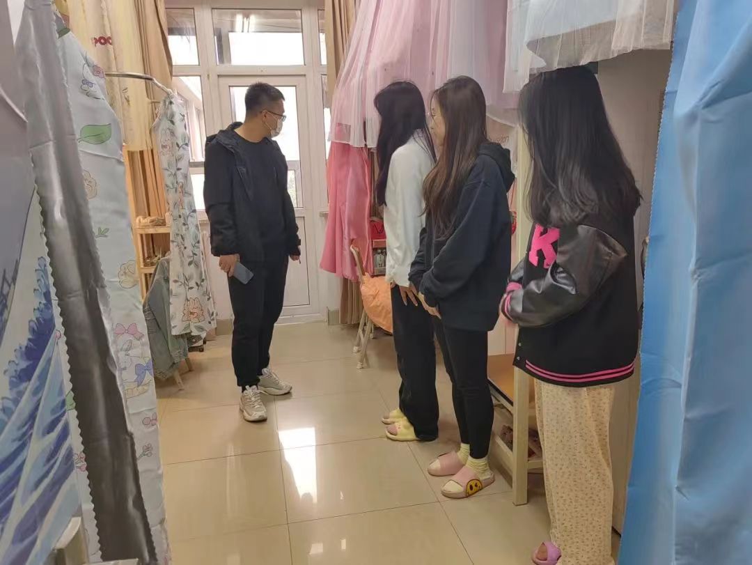 23级的辅导员于子容和22级的辅导员于子舰走访了学生宿舍,向同学们表达了关心和问候。