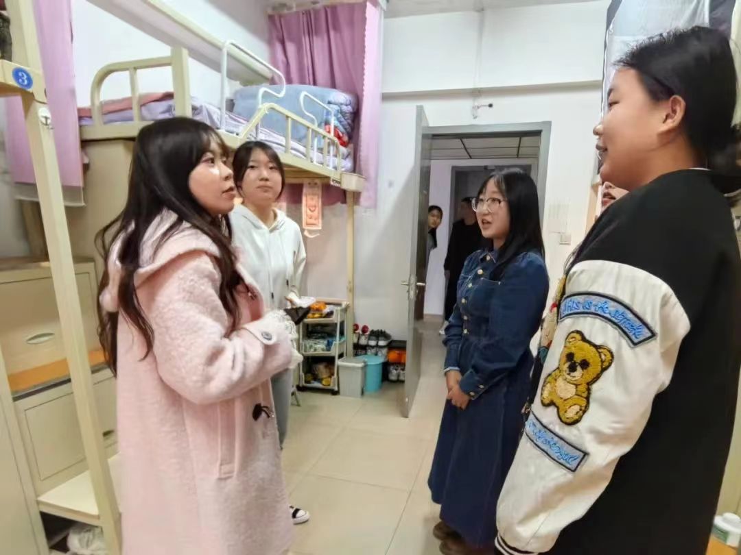 在访寝过程中,于子容老师和于子舰老师与同学们进行了亲切交谈,了解到同学们近期的生活和学习状况。并叮嘱同学们不仅要遵守宿舍管理制度,还要自觉提高卫生与安全意识。当下是流感的高发季,平时要勤开窗通风,保持宿舍整洁干净,做好个人卫生防护,平时加强体育锻炼。