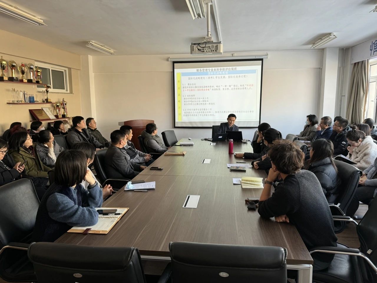 财务管理专业耿兴龙主任重点介绍了财务管理专业建设情况。财务管理专业延续了英语班、日式薄记特色班、ACCA试验班共同整合的复合型国际化战略规划,耿老师提出了两点意见与思考:第一,应着重专业教学与实际产业的结合,贴合市场发展趋势;第二,开展更高质量的校企共建工作,搭建实践平台,积累专业经验。