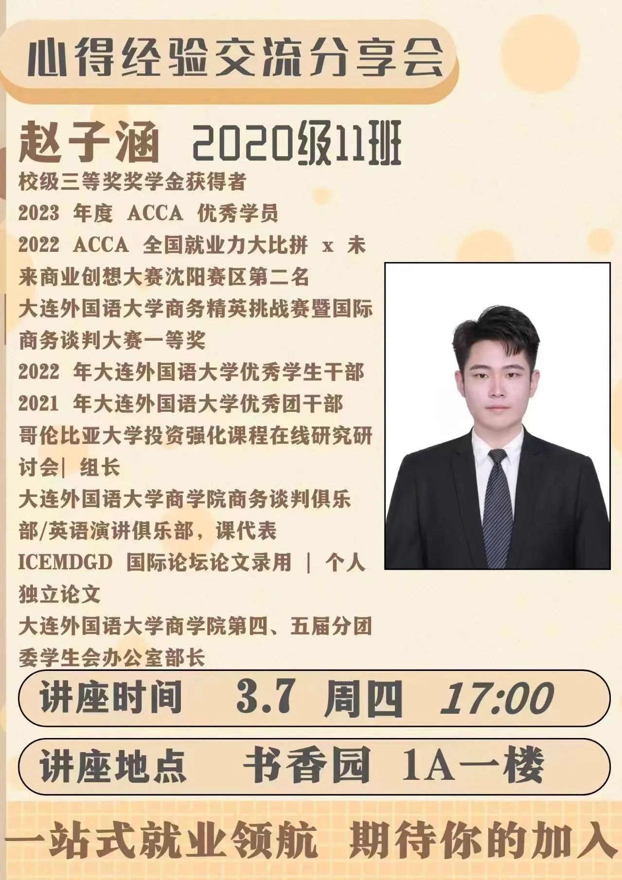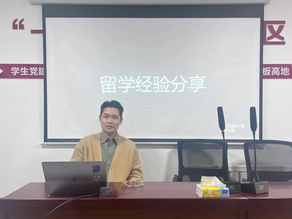 于书香园1号楼“一站式”学生社区党群活动中心开展“一站式留学经验”分享会,本次分享会由20级赵子涵同学主讲。