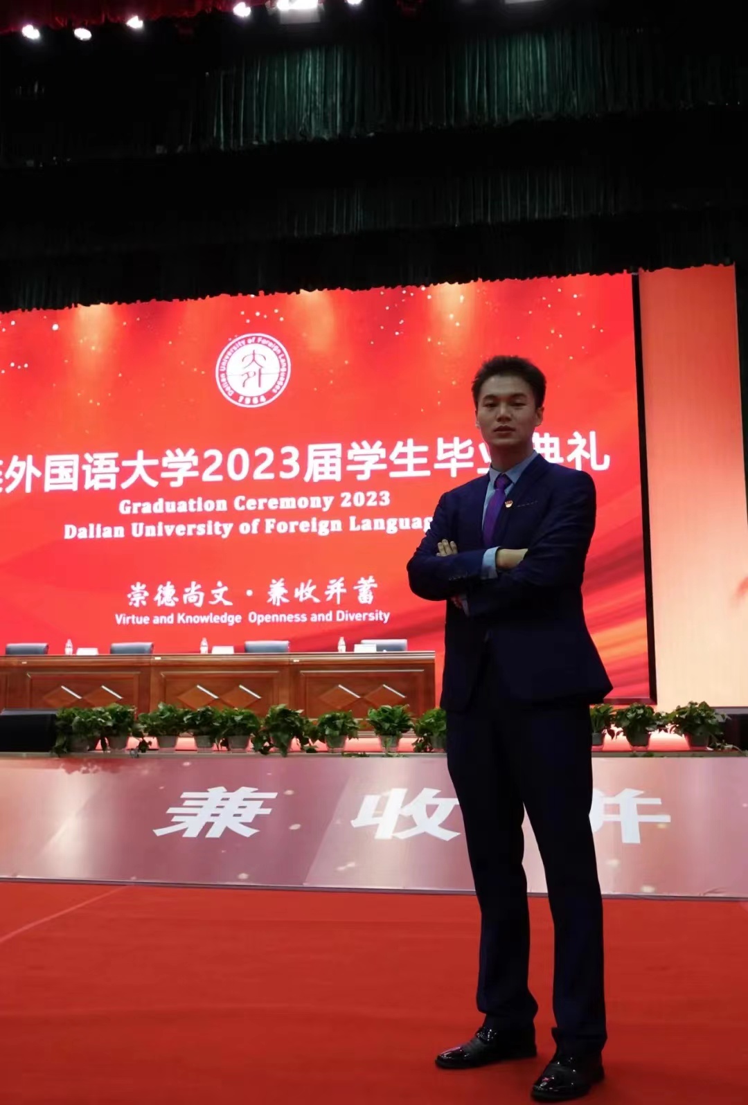 在经历上一个时期的迷茫之后,雷祖华迎来了拨云见日的大学四年级,在北京期间,他曾有幸去到了中华人民共和国商务部,坐落于长安街东2号的商务部门前立着这样一句话“坚持商务为民,建设经贸强国”,他决心在国际商务领域继续深耕,并成功考取了商务部国际贸易经济合作研究院的研究生。他希望将来能够回馈社会,怀揣着三分情怀,继续发光发热,展现大外学子的风采。