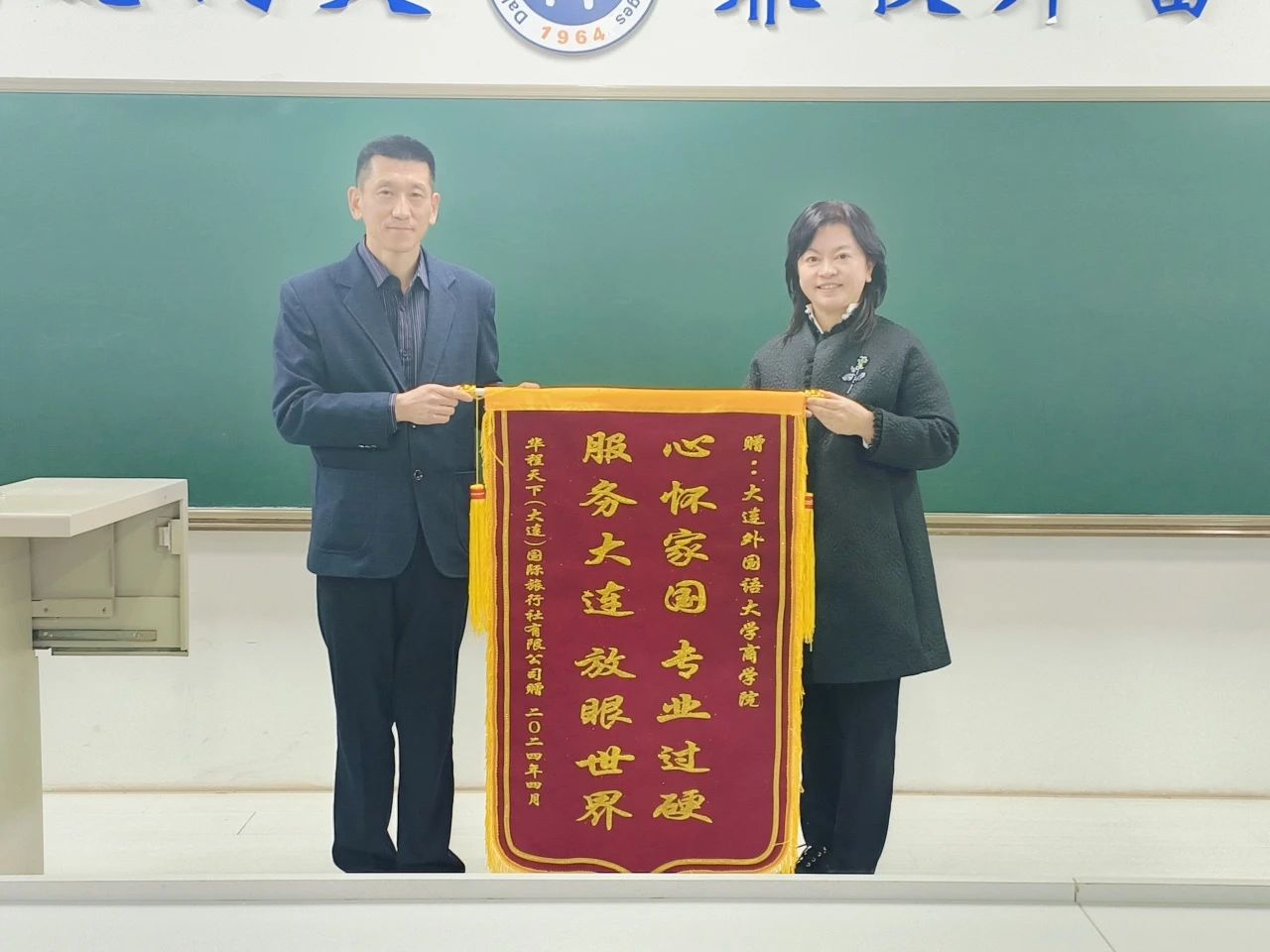 赠送一面寓意深远的锦旗,上书“心怀家国 专业过硬 服务大连 放眼世界”,以此表扬博彩排名
