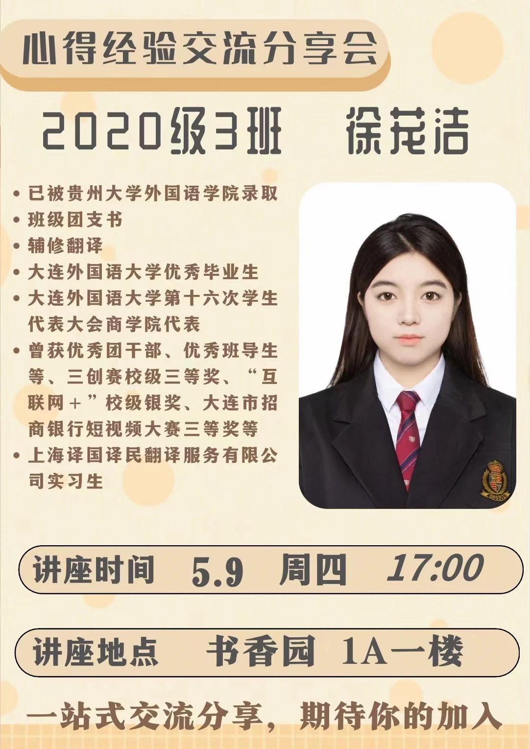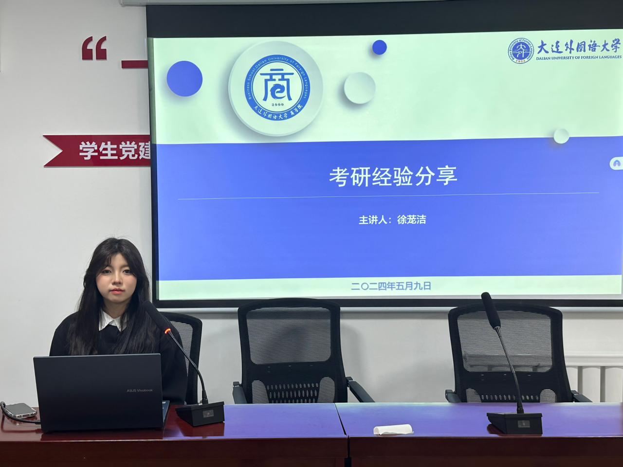 于书香园1号楼“一站式”学生社区党群活动中心开展“一站式就业引航”考研经验分享会,本次分享会由20级3班徐茏洁同学主讲。