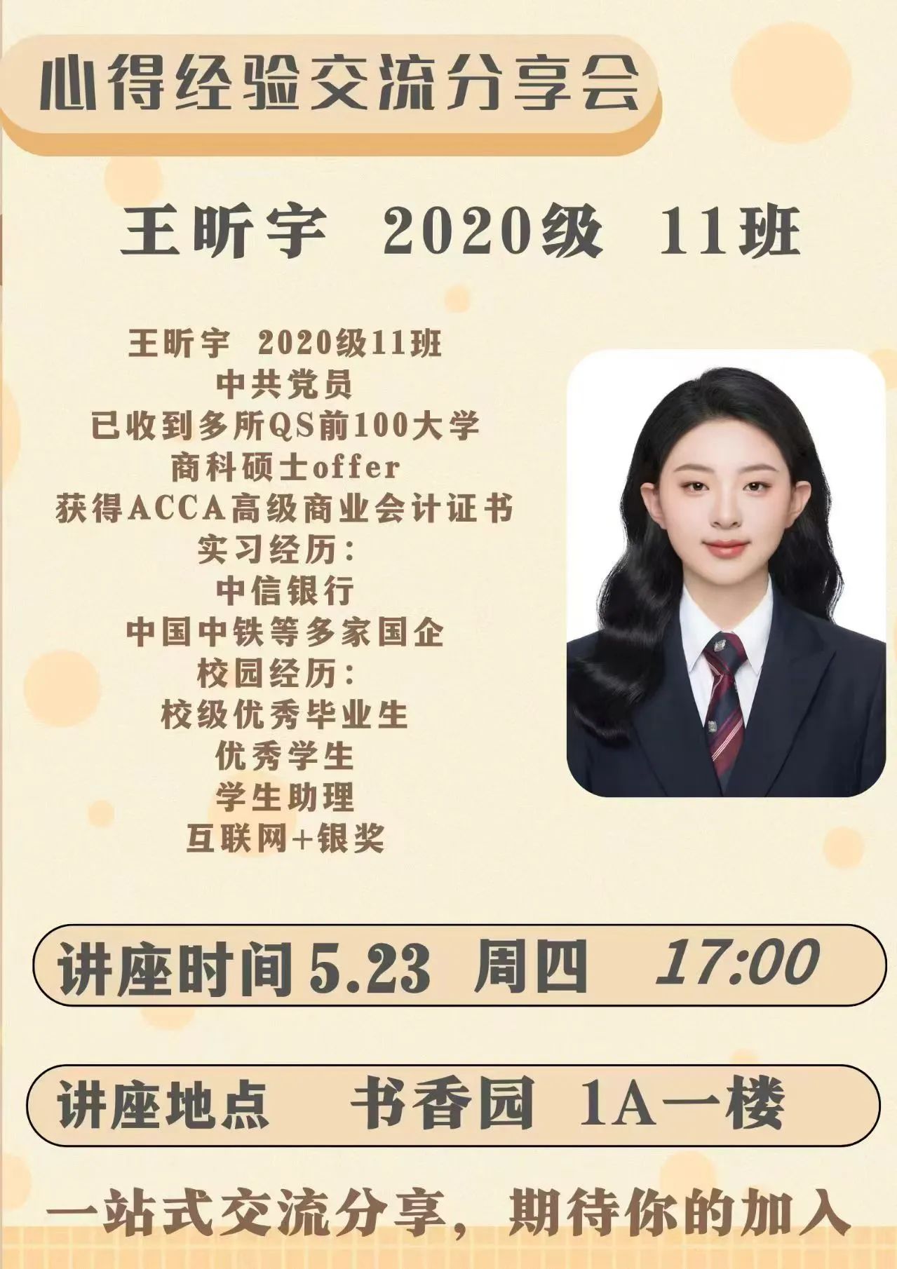护航就业,筑梦未来。此次留学经验分享会帮助同学们明确了留学准备过程中的要点,为同学们提供了关于留学申请的规划蓝图和实践性建议。相信商院学子在未来定会以最饱满的姿态乘势而上、勇敢尝试,全力奔赴梦想的终点!