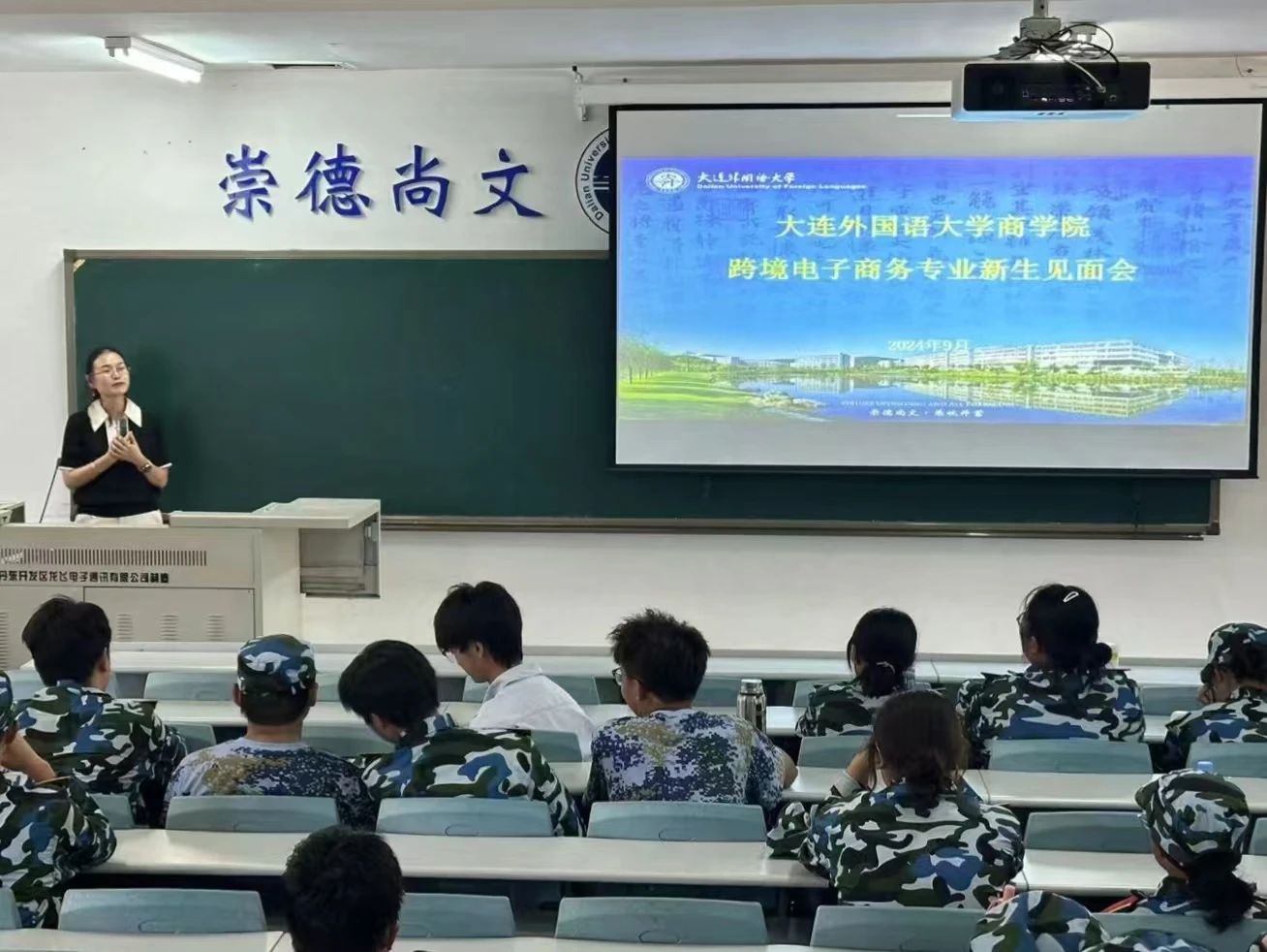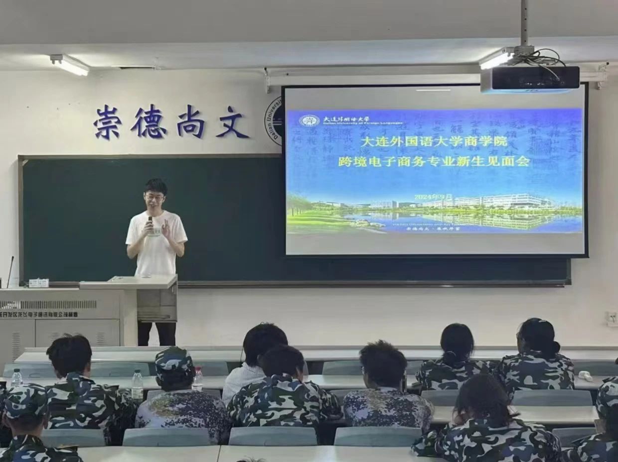 李晓莉老师主要介绍了我院跨境电子商务的专业历史、师资力量、优势特色、培养模式以及就业去向。为使同学们对英日两个不同方向的理解更加深刻,老师邀请了佟恒颐学姐、曲治州学长和战秋实学长进行分享,与24级新生们共同交流专业相关问题。