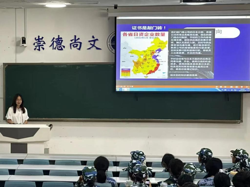 国际经贸教研室的邢梦玥老师从课程设置、就业前景、师资力量等角度出发,为同学们详细讲解了国际经贸专业的基本信息,帮助同学们更好地规划学业。此外,她介绍了该专业信息化的教学特色,信息技术的辅助推动了教学效率提高,能够及时抓取了国际经贸的最新动态,开拓了学生的眼界和认知,而重实践强应用的教学方式培养学生创新融合能力,同时本专业设置硕士授权点,为升学提供更多机会。