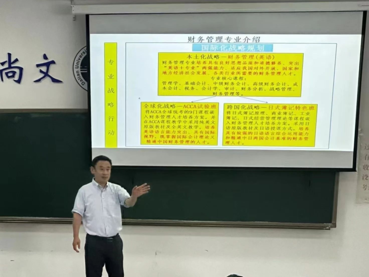 经济学教研室孙梁老师使用中英双语介绍了经济学专业的历史沿革、培养模式、发展前景等情况,建议大家在学习中要夯实专业基础,提升学科素养,及时关注经济动向,注重理论在实践中的应用。希望同学们能够兼顾好学业与生活,拥有丰富多彩的大学时光。