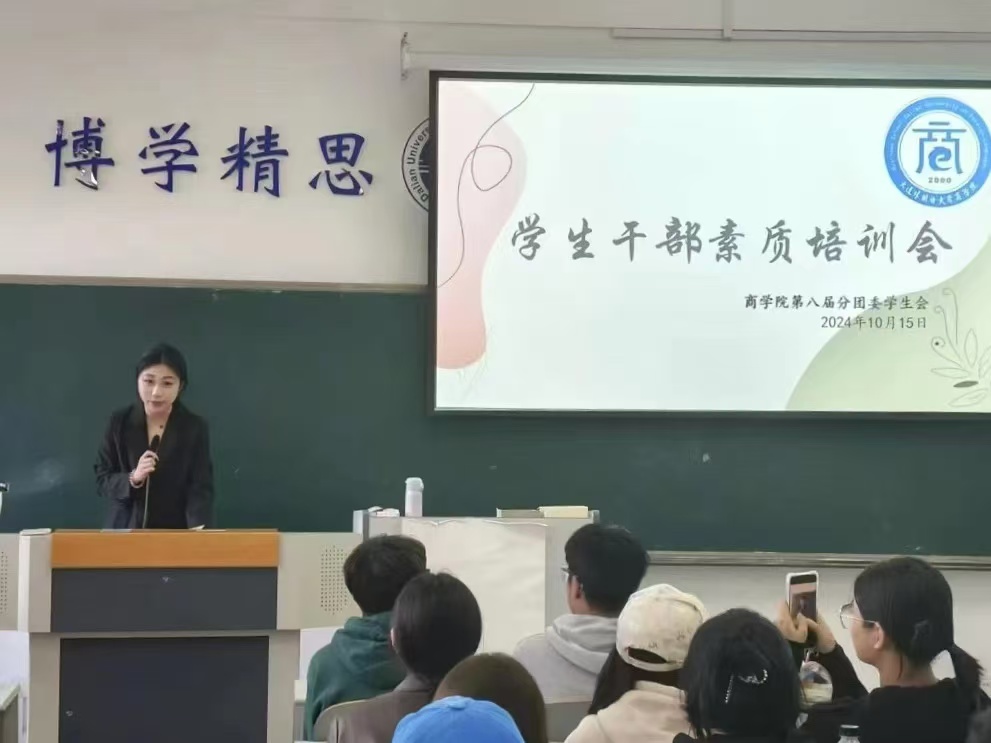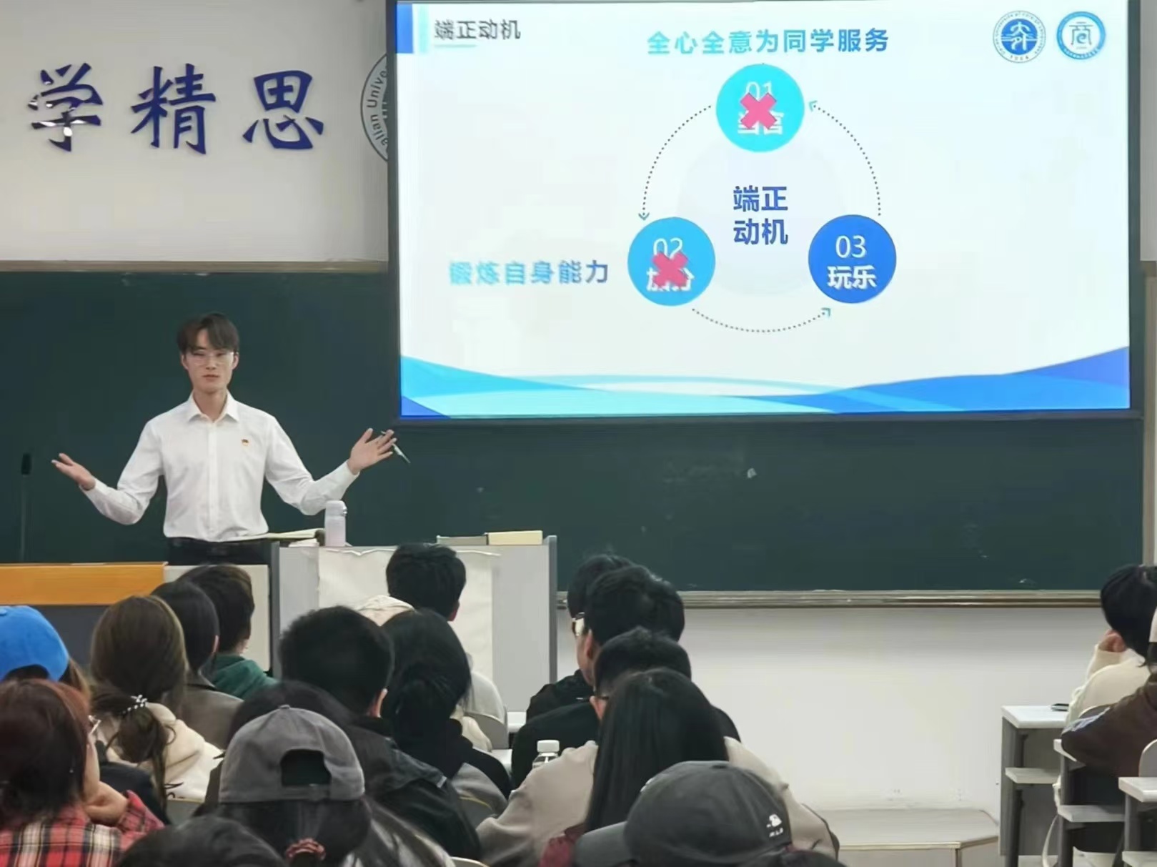 于励学楼503教室召开学生干部培训会。本次大会由24级郑棋文主持,第五十九届校学生会主席团成员耿高楠主讲,学生会各部门成员参加。