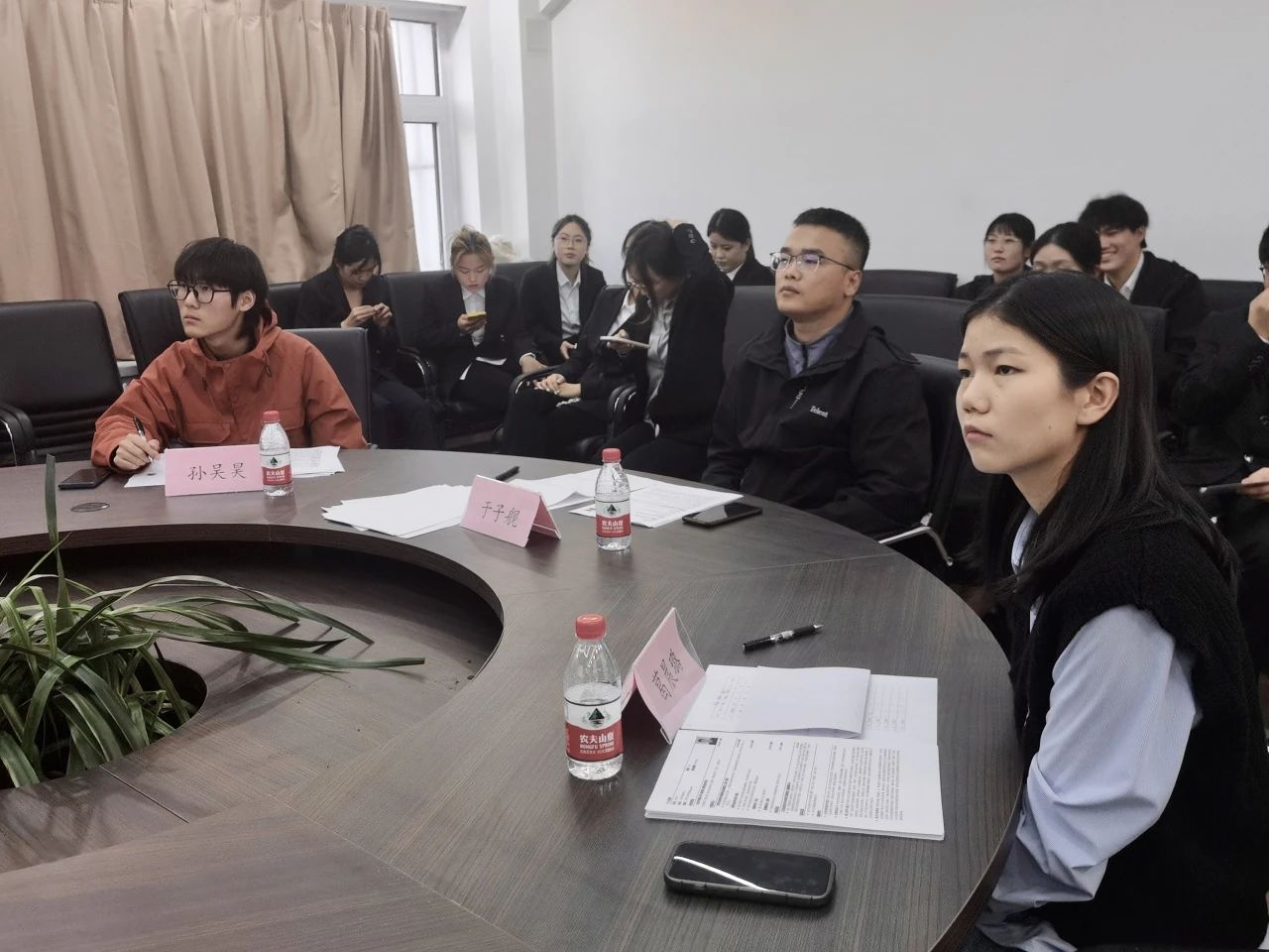 党总支副书记王欣悦、辅导员于子舰、2023级研究生王子豪、2021级优秀学生代表耿高楠、史雅文、孙吴昊、葛晨璐共同担任本场比赛评委。