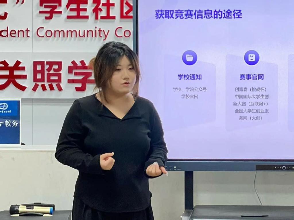 此次分享会以分享商赛经验为主,崔梓新同学结合自身商赛经历,分别从赛道选择、前期筹备等方面展开分享。她对商赛种类进行了详细介绍,并列举很多大型商赛,以供同学们参考借鉴。