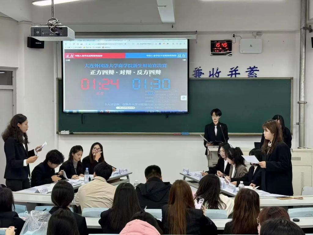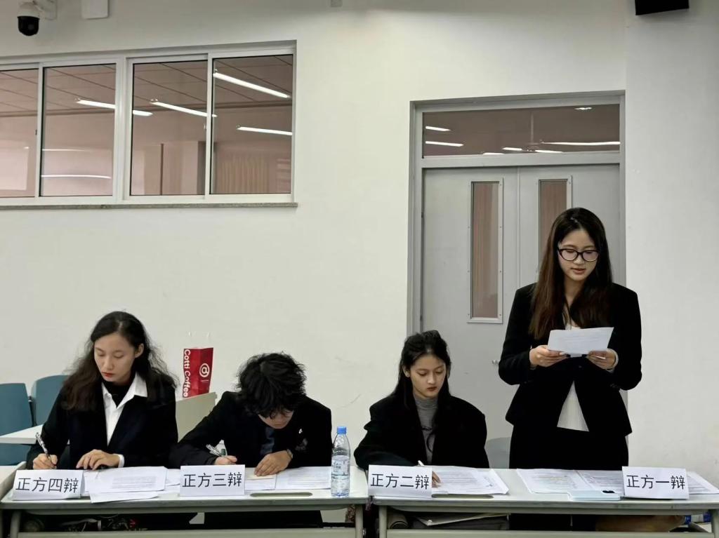 于明德楼205教室成功举办2024级新生辩论赛决赛,24级辅导员于子舰、21级卢鑫燕和吕霁耕担任本次比赛评委。