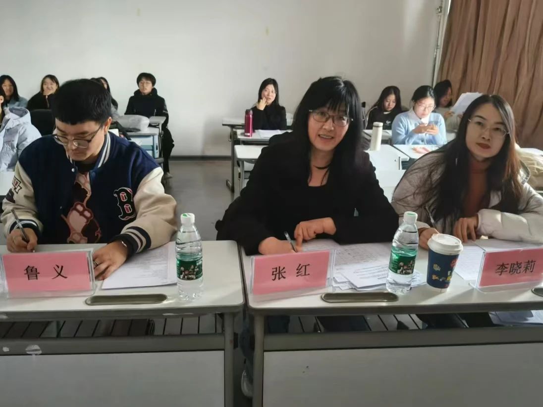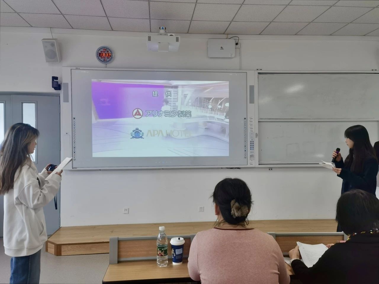 副院长张红老师、旅游管理教研室谢风媛老师、国际经济与贸易教研室宋月明老师、跨境电子商务教研室李晓莉老师、教学秘书鲁义老师、23级辅导员于子容老师担任评委。日语组邀请到公共外语教研室杨彩虹老师、公共外语教研室张晨星老师、分团委书记钟俊英老师担任评委。