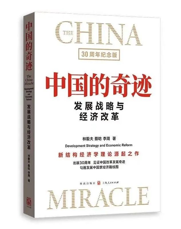 《中国的奇迹:发展战略与经济改革(30周年纪念版)》由林毅夫、蔡昉、李周所著,2024年9月由格致出版社和上海人民出版社联合出版。本书梳理了中国转型期经济高速增长的逻辑,也是有中国特色的理论经济书籍。30多年前当人们还热衷于讨论东亚奇迹的时候,本书作者在研究改革开放后中国年均9.7%的增长实绩的基础上,首次提出了“中国的奇迹”概念,分析了中国转型期经济高速增长背后的独特逻辑,重构了以中国为典型的体制转型国家的经济发展、运行理论。