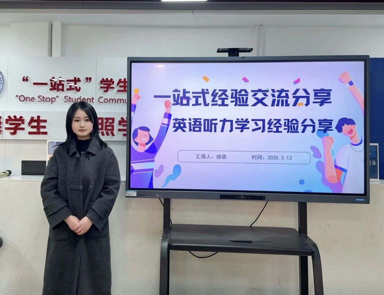 于“一站式”学生社区综合管理服务中心开展“一站式”就业引航“职”达未来就业能力提升系列活动第一期——英语听力学习经验分享会,本次分享会由21级10班徐诺同学主讲。