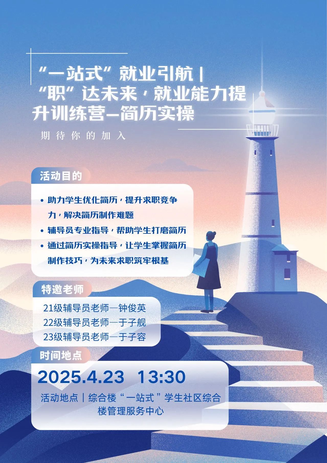 于综合楼“一站式”学生社区综合管理服务中心开展“一站式”就业引航“职”达未来就业能力提升系列活动第五期——简历实操培训。本次活动由21级辅导员钟俊英主讲,23级辅导员于子容参加此次培训会。