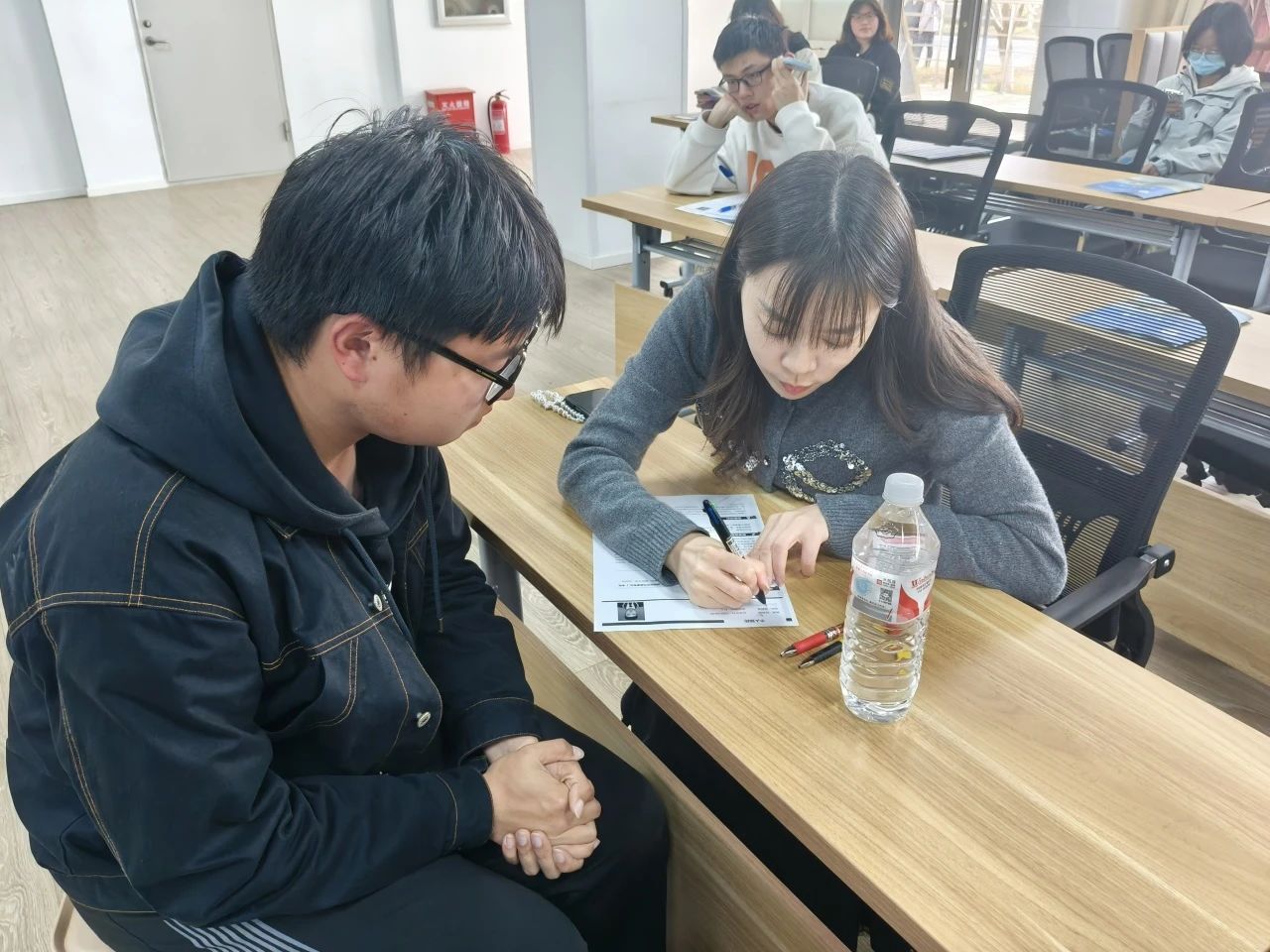 讲解结束后,钟俊英老师和于子容老师分别对参会同学的简历进行“一对一”修改指导,帮助同学们重新梳理模块顺序,突出个人优势。