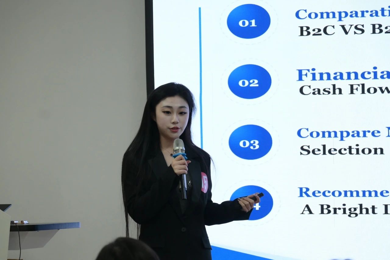 决赛中,我院代表队是来自2023级的汪紫茉、王志珂以及2024级的郑棋文、杨宇铎同学,他们以《Edugo’s strategic crossroads B2B2C vs B2C analysis》为课题,结合ACCA专业知识,精准剖析行业痛点,提出兼具前瞻性与落地性的解决方案。面对评委的提问,队员们沉着应对,以流利的英文陈述、严谨的逻辑论证和默契的配合征服全场,最终脱颖而出,问鼎冠军!