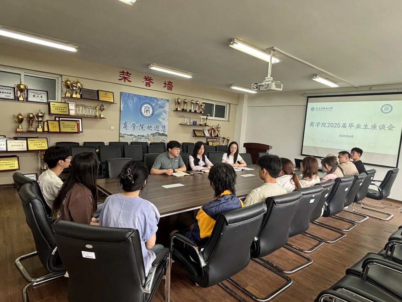 于励学楼410会议室举办2025届毕业生座谈会,学院相关领导老师及各专业毕业生代表参与本次座谈会。