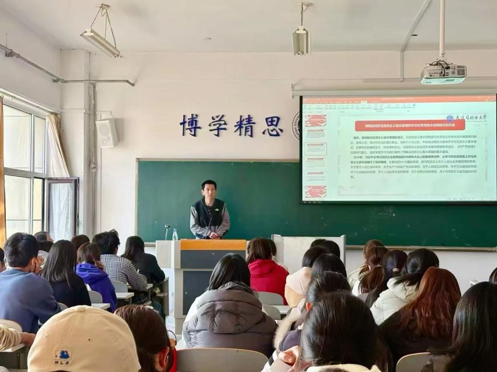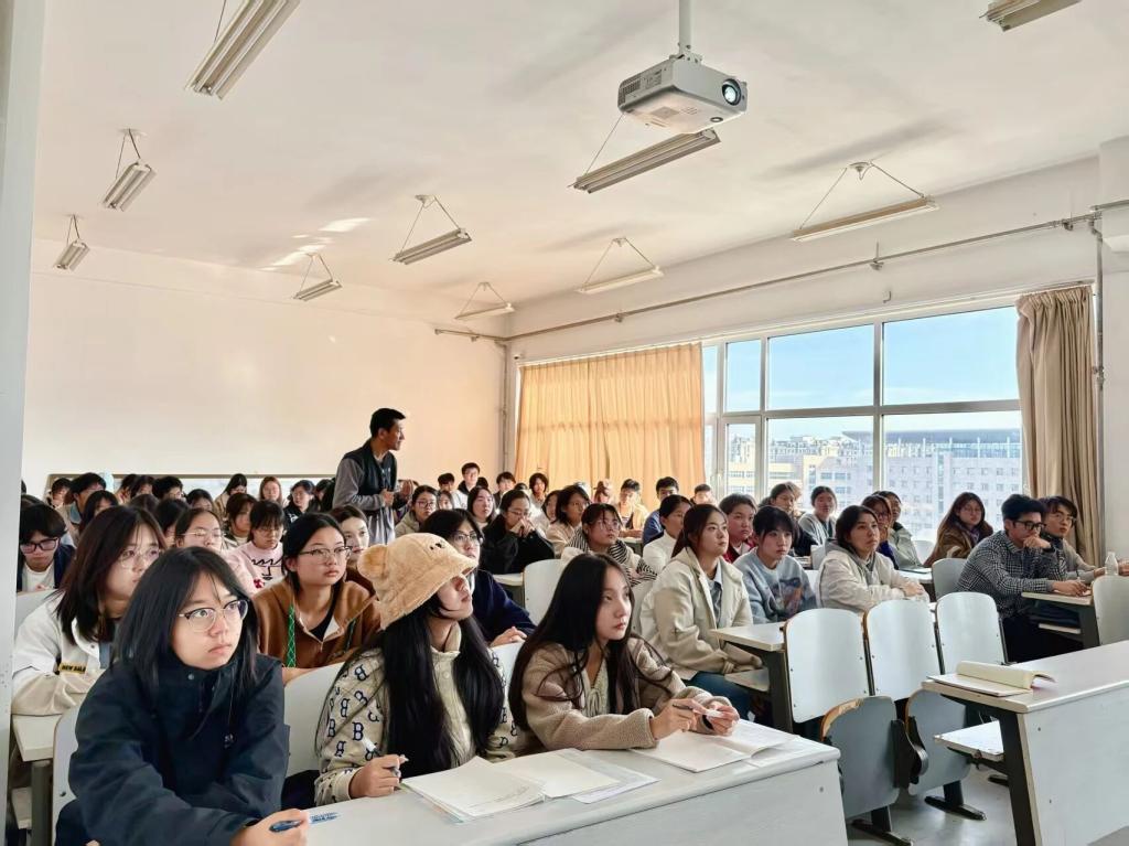 贾哲书记以“传承千年文脉——从文化自信到入党初心”为主题,围绕中华文明的卓越智慧、党的文化根基与创新、中国方案的文明贡献、青年初心与入党征程四个方面展开讲解,鼓励青年学子坚定文化自信,争做中华文化传承者。在大学的学习生活中深植文化之根,筑牢信仰之基,贡献青春之力,自觉将个人理想融入国家和民族事业中。