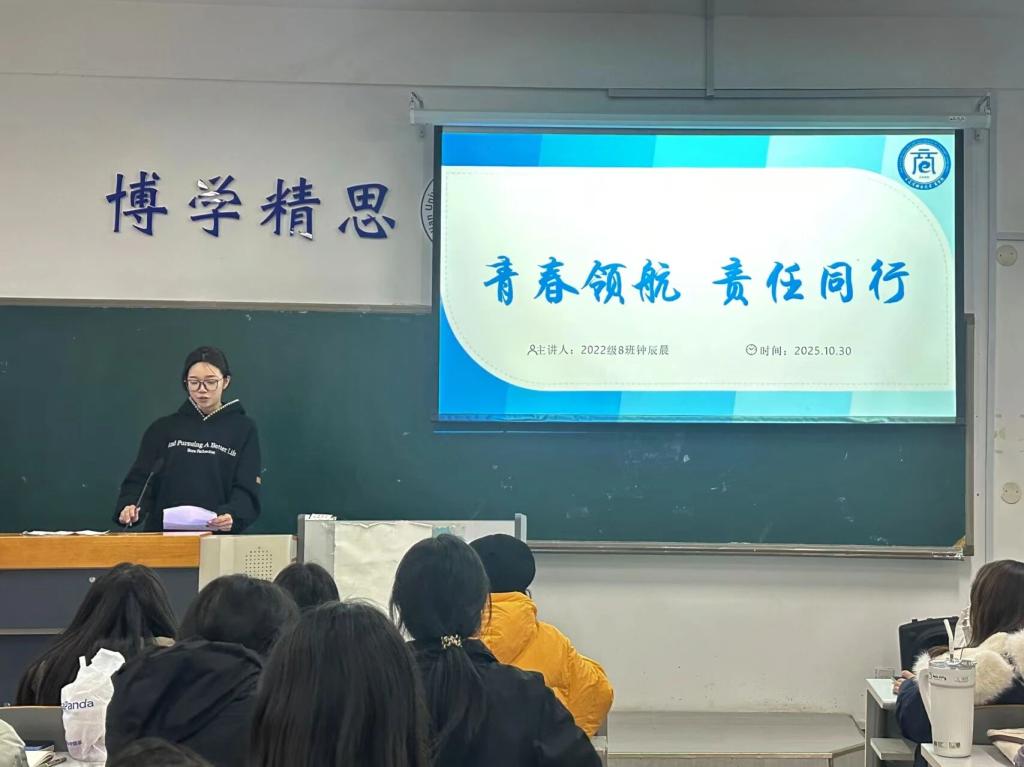 钟辰晨同学结合自身经验,从身份、责任、精神、坚守四个方面展开分享,强调学生干部应该恪守学生本分,牢记为同学服务的宗旨,以认真严谨、主动自觉的态度对待工作,发挥模范带头作用。她明确指出,学生会成员应明确角色定位,先做“合格”的学生,再做“靠谱”的干部,大家应该端正作风、从严律己、踏实履职。