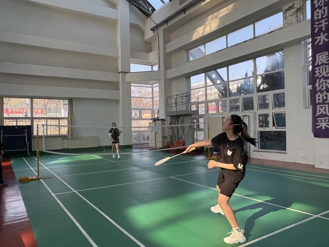 在风雨操场举办“‘羽’快杯”羽毛球比赛。