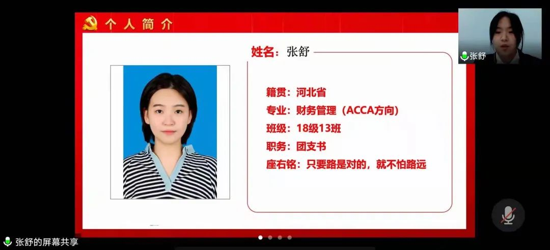 学生第一、第二党支部在线上召开预备党员转正大会。本次大会对学生第一、第二党支部共21名预备党员进行转正考察。组织员史琳出席会议。学生第一党支部书记王玮瑜,学生第二党支部书记钟俊英分别主持会议,学生第一党支部副书记于子容、学生第二党支部副书记潘博及全体学生党员参加会议。
