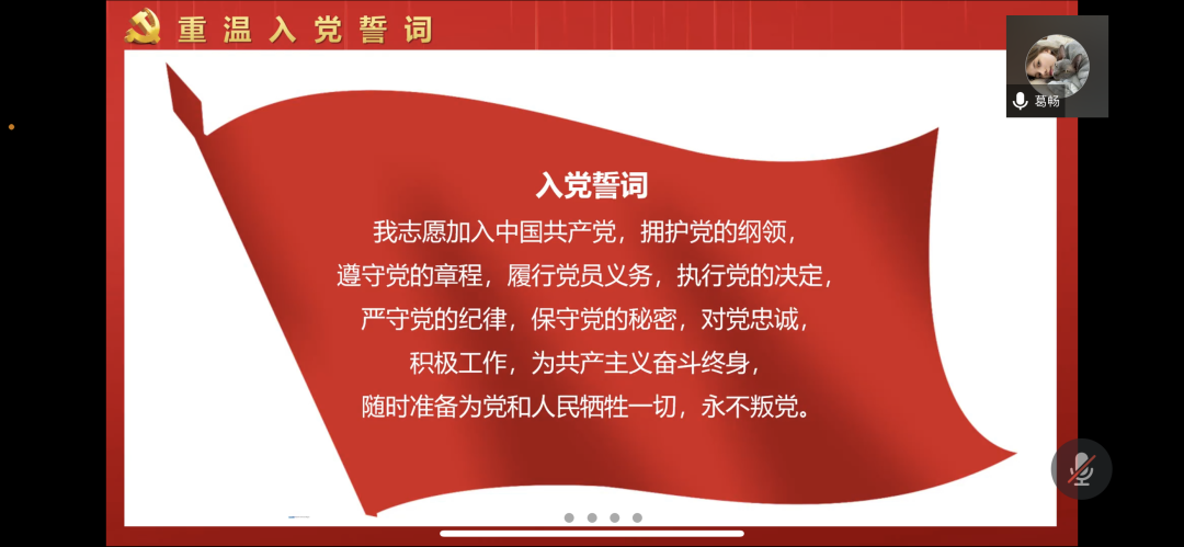 领誓人苗光瑶和李虹延分别带领全体党员重温入党誓词,牢记使命,砥砺前行。