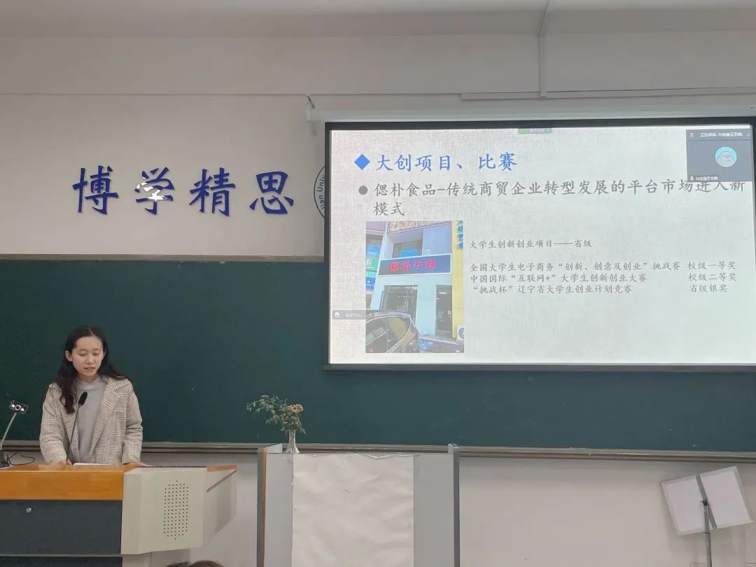 在本次分享中,宋素珍同学结合自身项目工作经历和学习经验,就参加创新创业类比赛、考研择校等方面,为同学们提供了详细的介绍和分享。