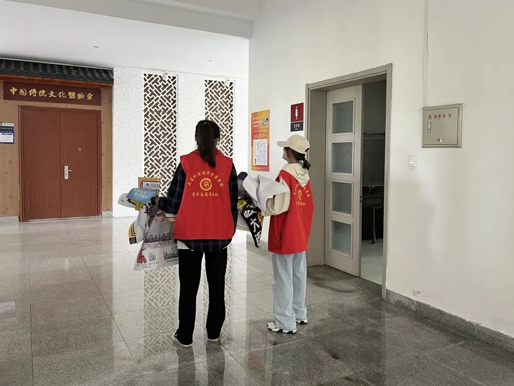 活动中,学生党员们统一身着志愿者服,准时整队集合、领取清扫工具,穿梭在励学楼的每个角落,对每个区域都进行了细致的打扫。
