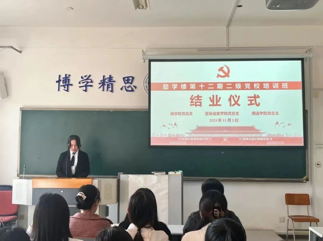 党总支共同举办了大连外国语大学励学楼学生党校第十二期培训班结业仪式。俄语学院学生党支部副书记美合日古丽老师、亚非语言学院组织员毕文慧老师、博彩排名