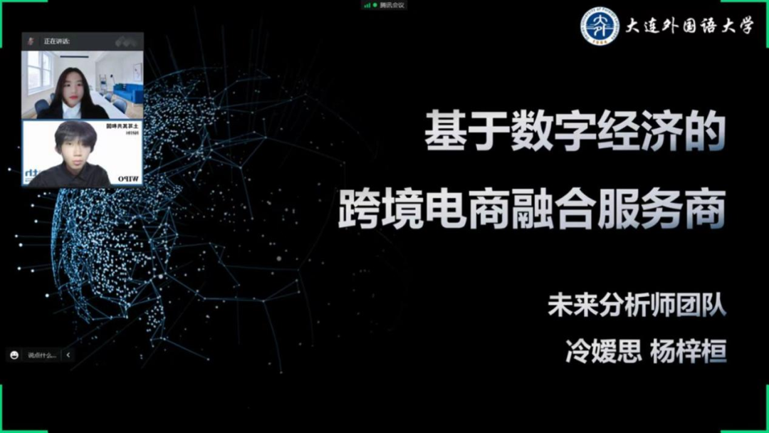 由2020级金融专业的冷媛思、2021级国际关系学院的杨梓桓组成的团队在决赛阶段,以“双碳战略”为背景,以国际关系、ESG、数字贸易为抓手,选择时下热题——跨境电商,在宋文和朱玉荣两位老师的悉心指导下,将理论与实际相结合,锻炼数字贸易的实际操作能力。