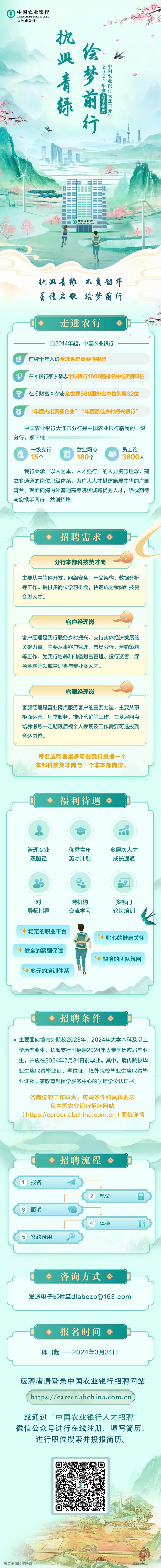 【2024届春招】中国农业银行大连市分行2024届春季校园招聘正式启动