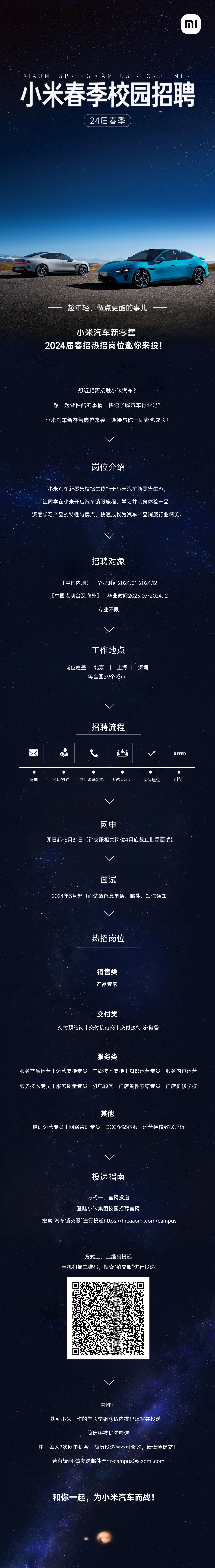 【2024届春招】小米汽车新零售2024届春季校园招聘正式启动