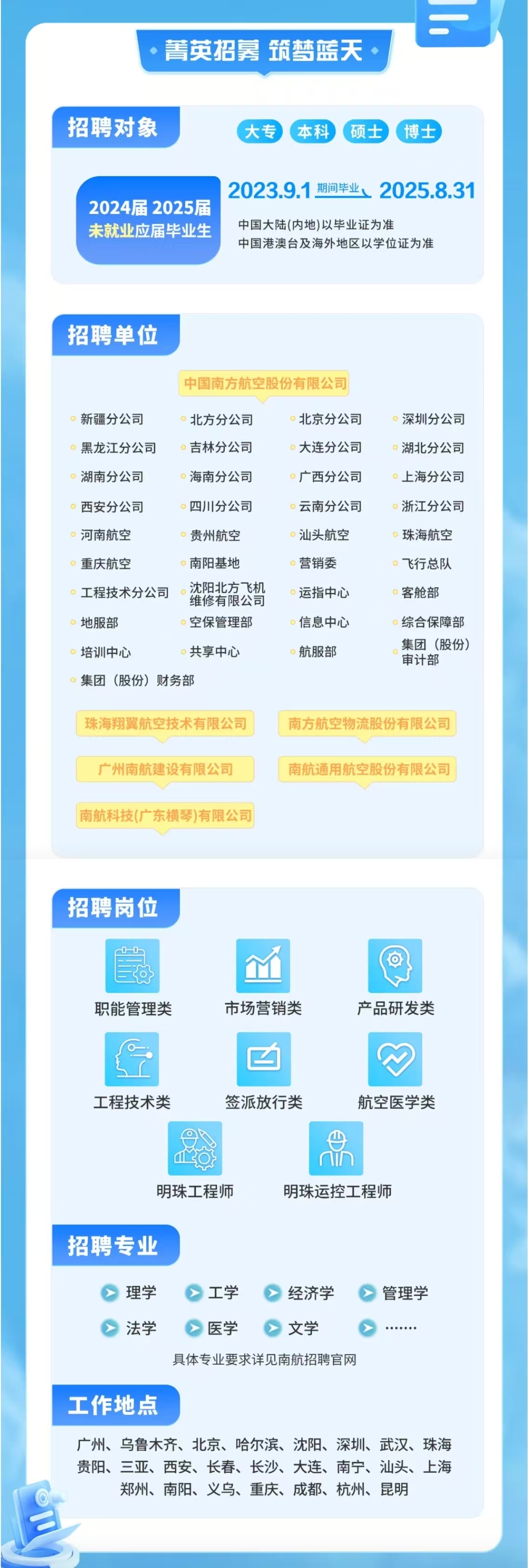 【2025届招聘】中国南方航空2025届校园招聘正式启动