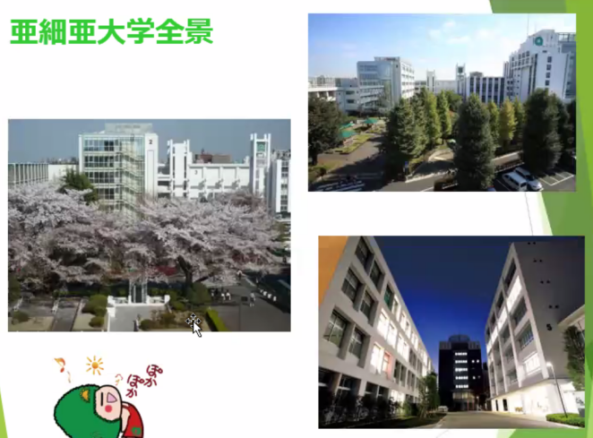 负责人介绍了亚细亚大学的下设学院及专业,AUGP等留学项目,奖学金制度,保险制度,留学生就业三大方向。展示了学校环境,宿舍环境,以及富士山露营,亚细亚祭,棒球赛等活动。同学们就成绩要求,开设课程等留学相关问题积极提问,负责人逐一为同学们解答,增进了同学们对亚细亚大学及留学事项的进一步了解,帮助同学们明晰了未来留学规划与发展方向。