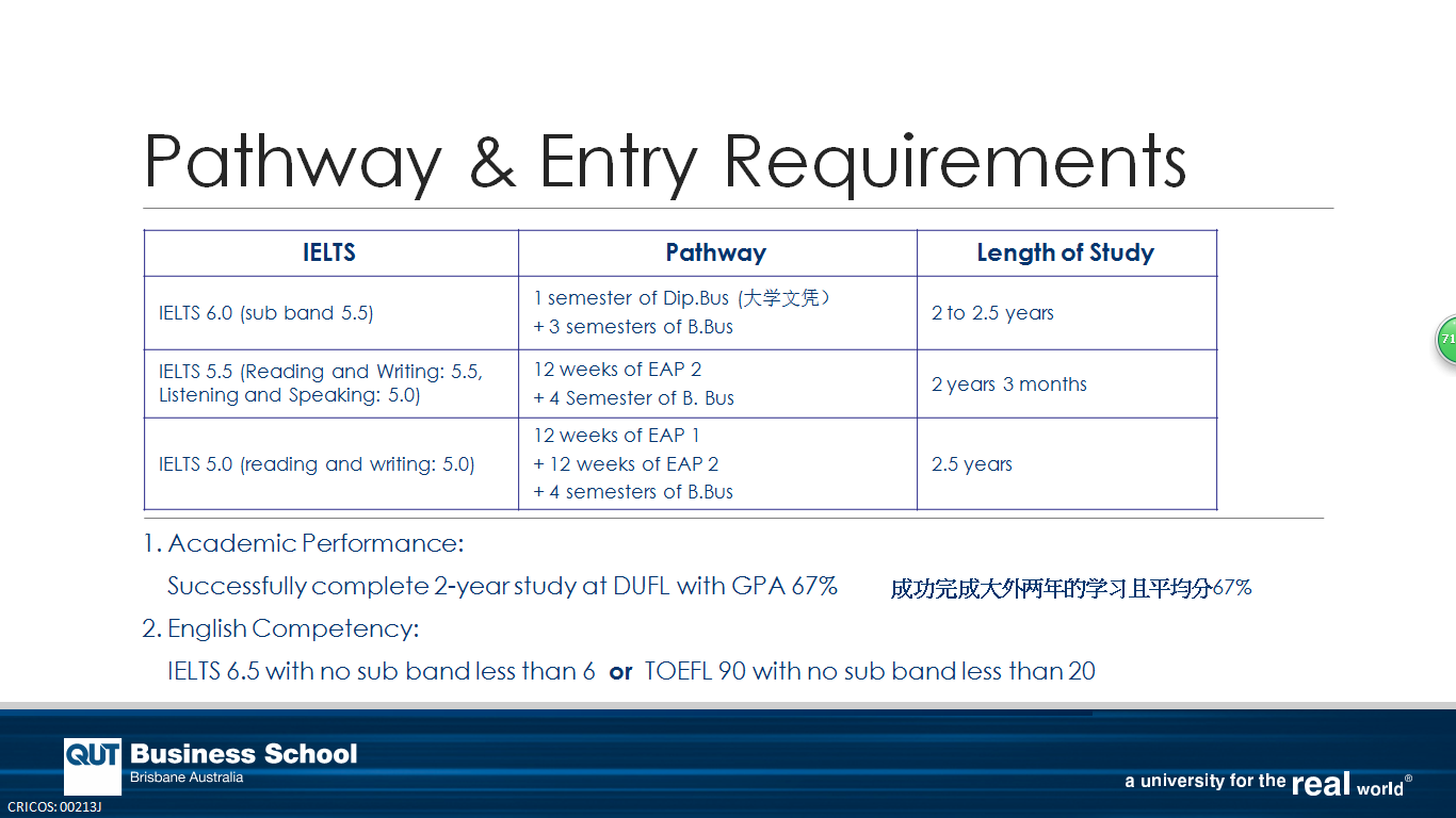 (须达到GPA 4/7,以QUT的7分为满分的评分标准)