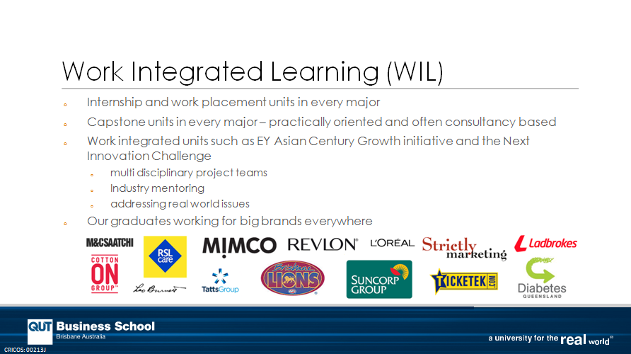 位于布里斯班市中心的Gardens Point校区,目前总共有大约一万两千名学生(国际生占两千八百名左右,来自于九十多个不同的国家)。学院是澳大利亚第一所同时获得国际三大顶级认证机构--美国管理学院联合会(AACSB International)、欧洲管理发展基金会的授权机构(EQUIS)、和英国工商管理硕士协会(AMBA)认可的博彩排名